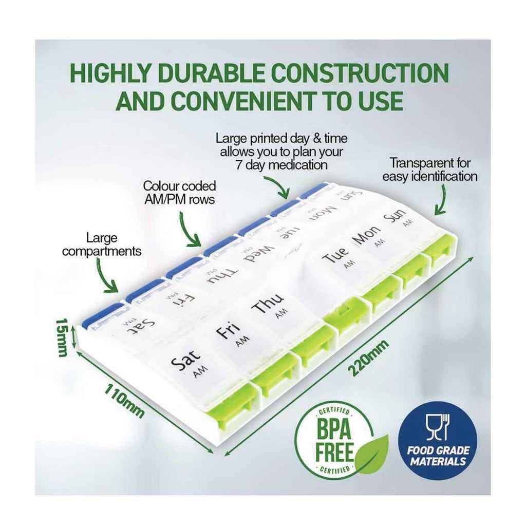 AM/PM Weekly Pill Box 7 Day Tablet Medicine Organiser Holder Case 14 Compartment