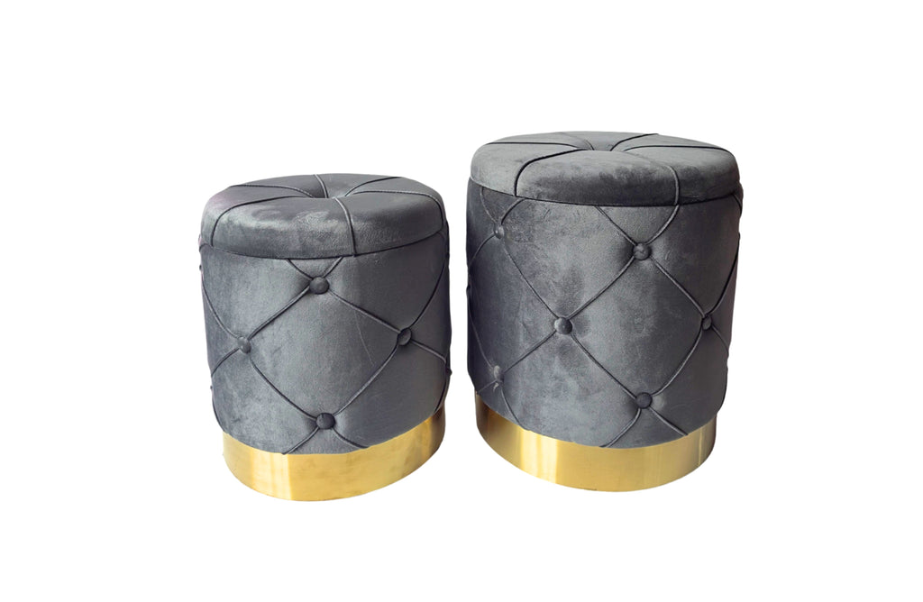 Amy Storage Foot Stools Set of 2 - Gray / Gold