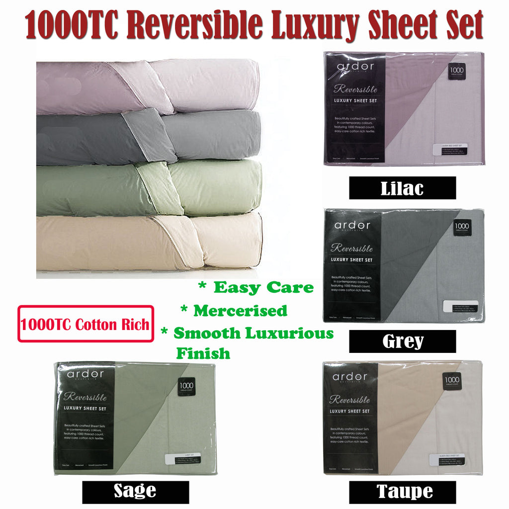 Nothing can be more comforting than this 1000TC Cotton Rich Reversible Sheet Set by Ardor. It features contemporary colours in 1000 Thread Count, easy care and cotton rich textile. Indulge yourself with this luxurious bedding in Lilac, Sage, Taupe, and Grey lovely colours.