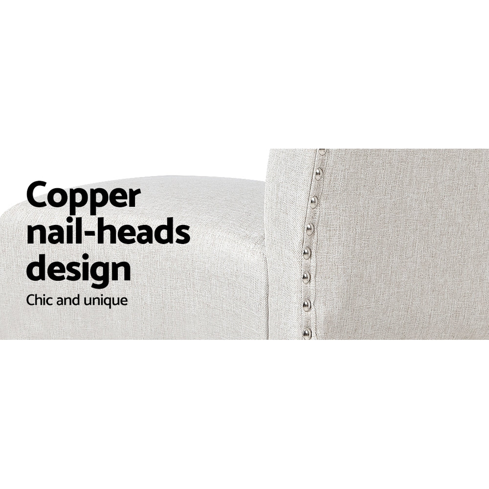 Nothing says elegance quite like an Artem Barstool from Artiss. The tufted button barstools upholstered in neutral, soft linen fabric add a touch of warmth to any stylish living space. The copper nail head trim design adds a unique metallic accent to your d�cor. The chairs are comprised of a sturdy wooden structure, dense and comfortable padding, sinuous spring support and solid rubberwood legs for a stable, secure chair. A high backrest and built-in footrest keep you comfortable and relaxed while anti-slip floor pads protect your guests from slipping and your floors from scrapes and scratches. Looking for a new way to lighten up your kitchen or living area? Look no further than the Artem Barstool set from Artiss.