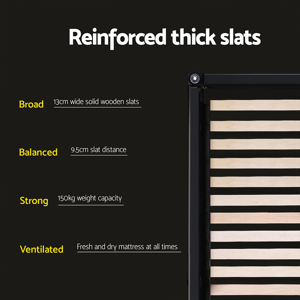 Give your bed a touch of modernistic appeal with our Artiss Neo Bed Frame. Wrapped in premium faux linen fabric, the bed frame is at once smooth to the touch and luxurious all round. The bedhead provides ample space for a relaxing back rest when you need to sit up on the bed to read, surf the net or catch a movie on your device. You will surely appreciate the high-density foam that fills the bedhead and every other inch of the bed frame for a well-padded look and feel. Within the frame, a highly flexible wooden arched slat base allows the bed to flex properly so that a person who lies on the bed can move around without unduly disturbing the other. Not least, the sturdy wooden frame is also held together by heavy-duty metal connectors so that you never have to worry about the stability or durability of the bed frame. If elegant sleep is what you after, look no further than the Artiss Neo Bed Frame to make your dreams come true.