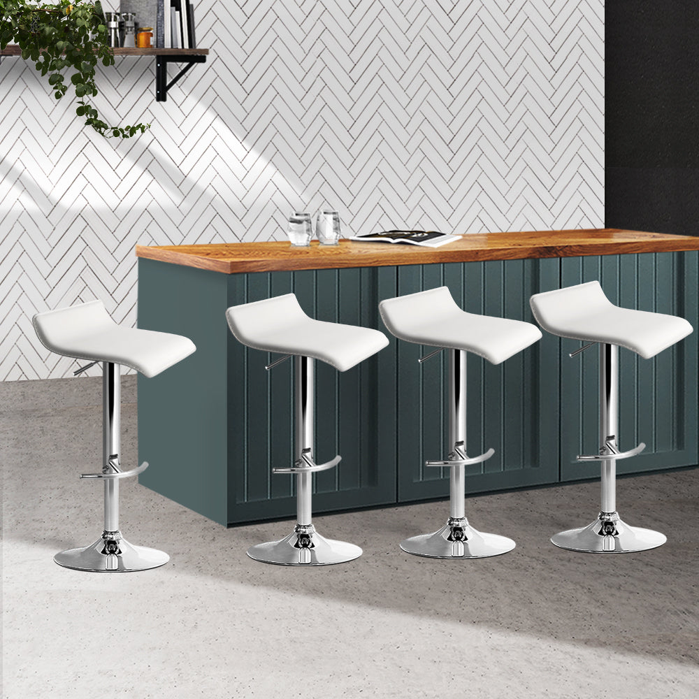 Artiss Set of 4 PU Leather Wave Style Bar Stools - White