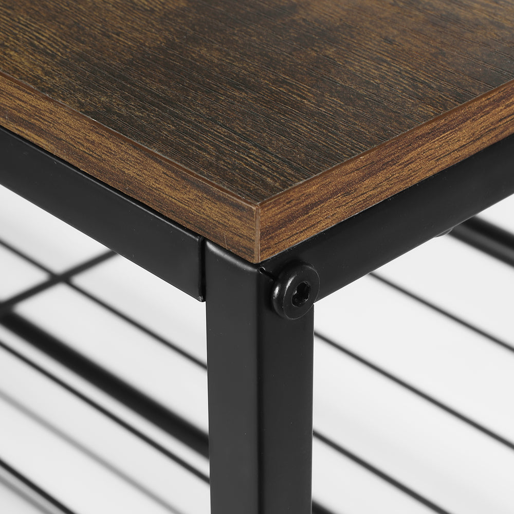 The industrial-style Artiss Bob Shoe Rack will help you keep the home neat and tidy without compromising on style. With its sturdy quality metal frame and smooth, clean surface, you can trust the shoe rack to keep your daily essentials at hand. The tabletop features a dark, natural wood grain colour that will blend in with most interior styles. Five tiers of open shelves give you plenty of room for essentials, while gaps along each shelf encourage proper airflow to prevent dampness, mould and mildew. The rack can store up to 25 pairs of shoes to keep the whole family organized. With simple assembly instructions, your hallways will be clutter-free in no time. Get yourself an Artiss Bob Shoe Rack and never lose your shoes at home again.