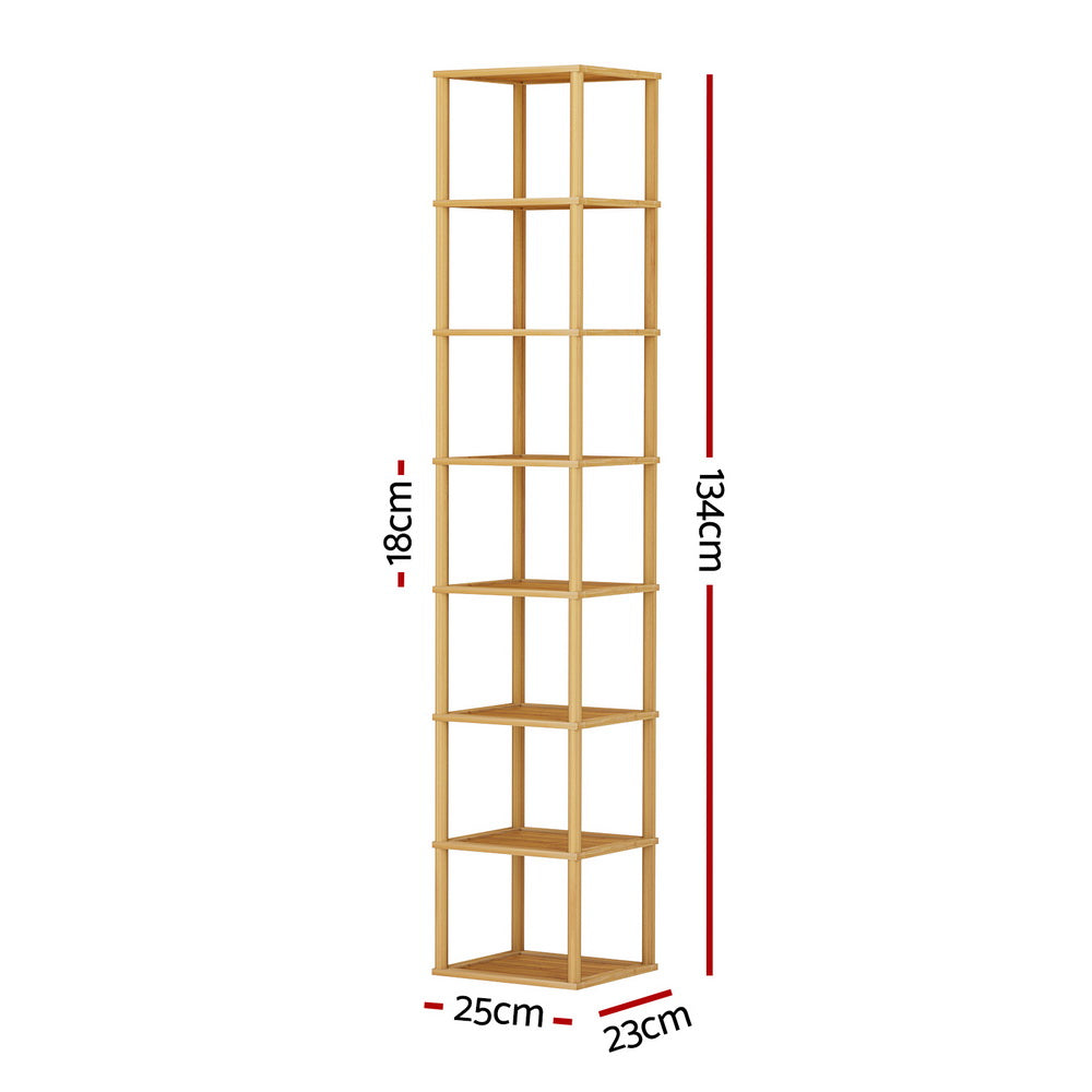The Artiss Taylor Shoe Rack is an ideal flexible storage solution for your home. Made from a sturdy bamboo frame and MDF shelves, the shoe rack is designed for long-lasting use. The 8-tier shoe rack features a stackable and flexible design, so you can arrange the rack into a variety of configurations to suit your needs. Compatible with most shoe types, you can store up to 8 pairs of shoes (depending on shoe size). Easy to assemble and even easier to maintain, you'll love the convenience and flexibility of the Artiss Taylor Shoe Rack.