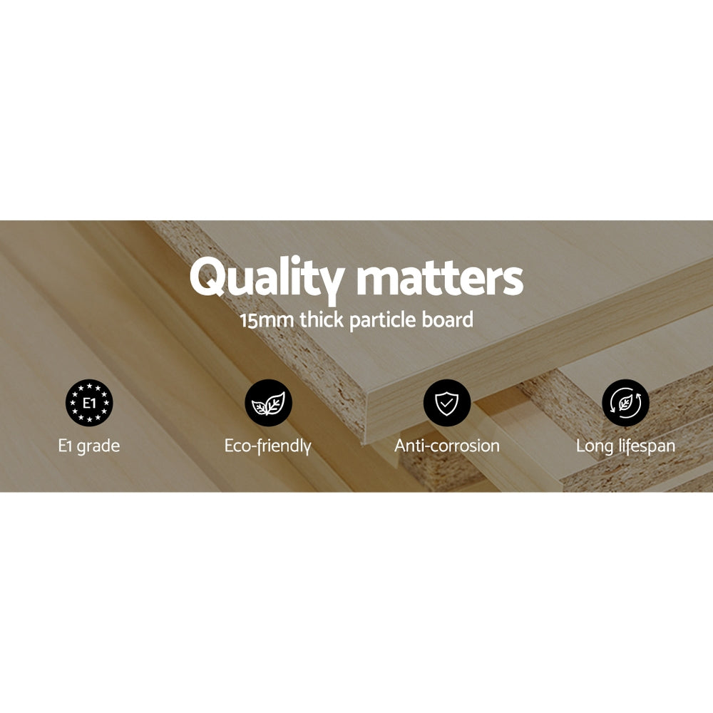 Looking for a stylish and practical entertainment unit to complete your living room or home theatre setup? Our Artiss entertainment unit won’t disappoint you. With its wide, low-profile design, and convenient storage, this entertainment unit will enhance your living space and keep it clutter-free. It boasts a unique dual-tone design, which makes it a stylish addition to any living room. The entertainment unit features solid and durable construction. It’s constructed from 15mm thick particle board with UV high gloss on the front and melamine finish, which makes it quite sturdy and ensures longlasting use. Our entertainment unit has three spacious drawers, which offers ample space to store other living room essentials such as magazines, remote control, and other stuff. The drawers come with smooth metal runners, which makes for hassle-free operation. It also has two tempered glass shelves to store all your entertainment paraphernalia in an organised manner. Furthermore, this entertainment unit features anti-slip base. It guarantees ultimate stability and prevents the entertainment unit stable from slipping or moving. Bring this uniquely designed entertainment unit for your home today.