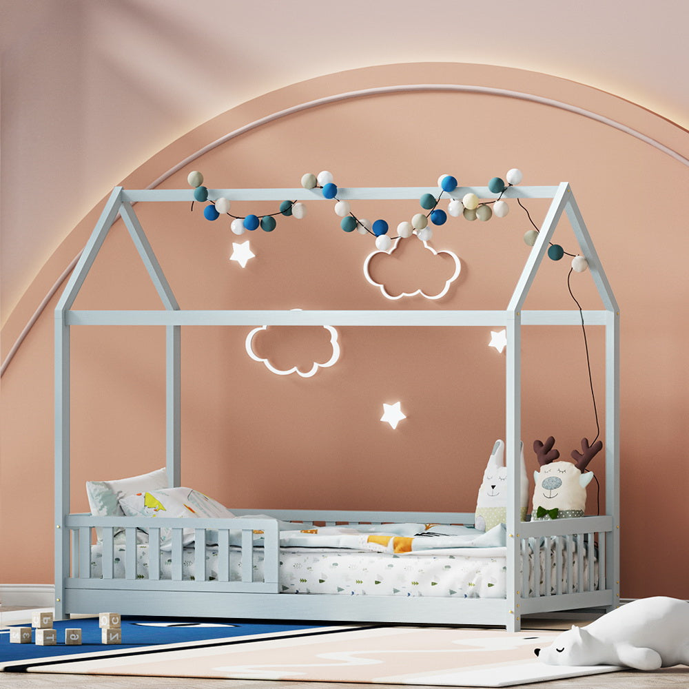 Create a cosy sanctuary for your kids where they'll love retiring after a long day of play and study with Artiss Rock bed frame. It features a gorgeous house-shape design that will add an elegant and classic touch to your child's bedroom. The bed frame is crafted from solid pine wood, which makes it quite sturdy in addition to its elegant looks. It comes with heavy-duty steel fixings and reinforced bracket support for ultimate stability and prevents shaking. This bed frame has a slatted base. The slats are well-placed, which allows proper ventilation and prevents build-up of bacteria and germs. Furthermore, Artiss Rock bed frame comes SGS-tested with non-toxic paint finish that ensures your child's safety, and the smooth finished edges prevent from any accidental injuries. It also comes with side rails of ideal height that prevents falls while asleep. The Artiss Rock bed frame has been thoughtfully designed. It's easy to keep clean and maintain. Just a simple wipe with dry cloth will do the job. Bring home this Artiss Rock wooden bed frame for your kid's bedroom today.