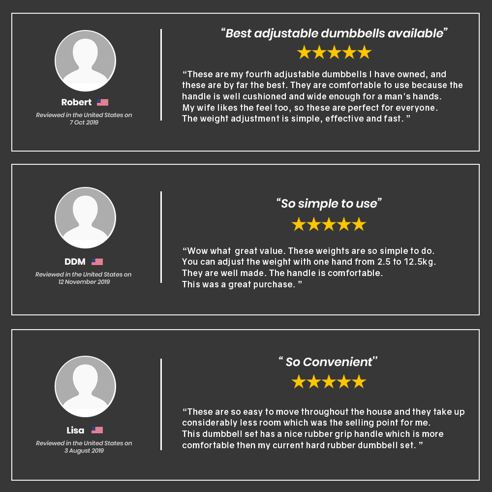 Giving you the versatility of 5 sets of standard dumbbells, your Ativafit®, set saves you on the initial outlay cost as well as being much more compact to store! With superior design and build quality, it should come as no surprise that Ativafit®, are leaders in the U.S. market. While other adjustable dumbbell models have a plastic locking system, Ativafit®, utilises a secure high-tensile steel design.