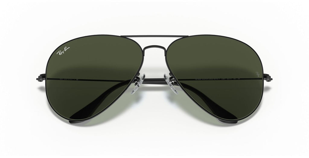 Upgrade your eyewear with the Ray-Ban Aviator Large Metal II Sunglasses in Black and Green. Featuring a bold black metal frame and classic green lenses, these shades provide a modern take on the iconic aviator style. Designed for superior comfort and durability, they offer 100% UV protection. Perfect for any setting, from a day at the beach to a stroll through the city, these sunglasses add a touch of effortless cool to any outfit.