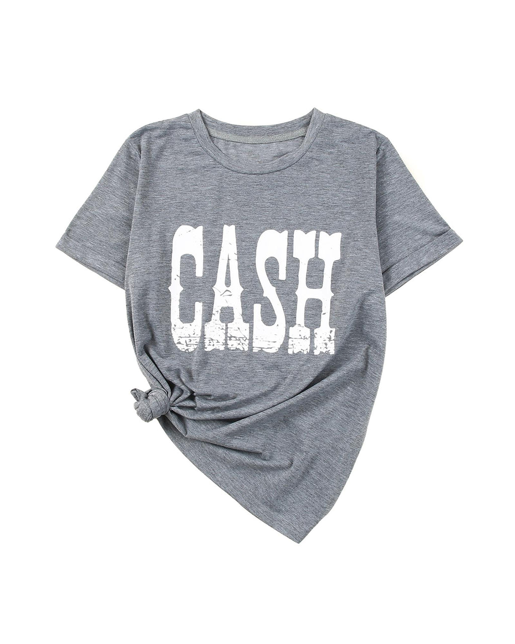 - Womens CASH Letter Print Short Sleeve T-Shirt