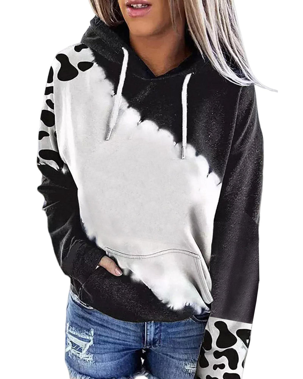 Azura Exchange Cow Tie Dye Print Pullover Hoodie with Pocket - S