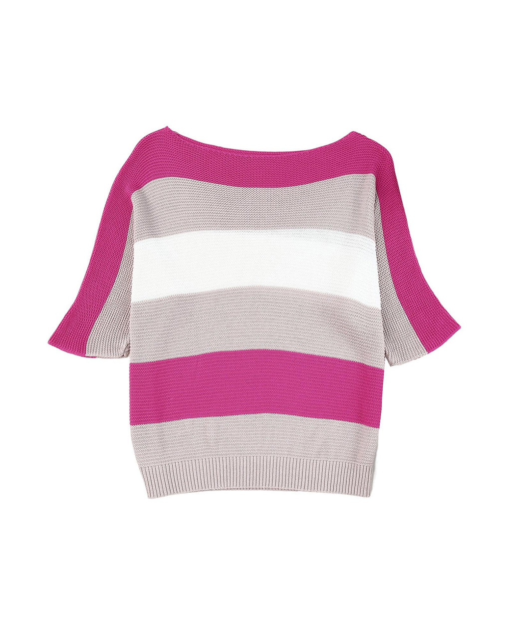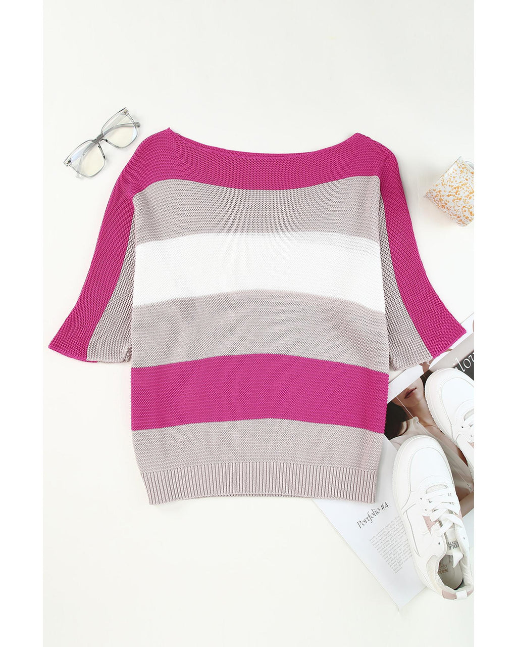 Azura Exchange Half Sleeve Contrast Stripe Knit Sweater - S