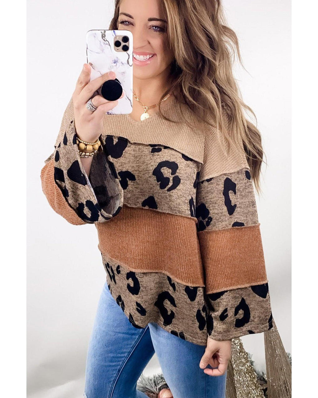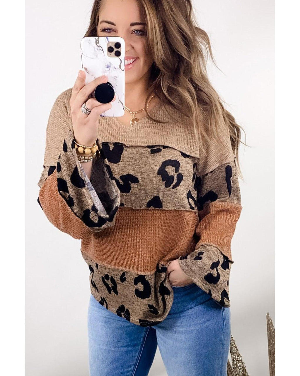 Azura Exchange Leopard Colorblock Patchwork Knit Top - M