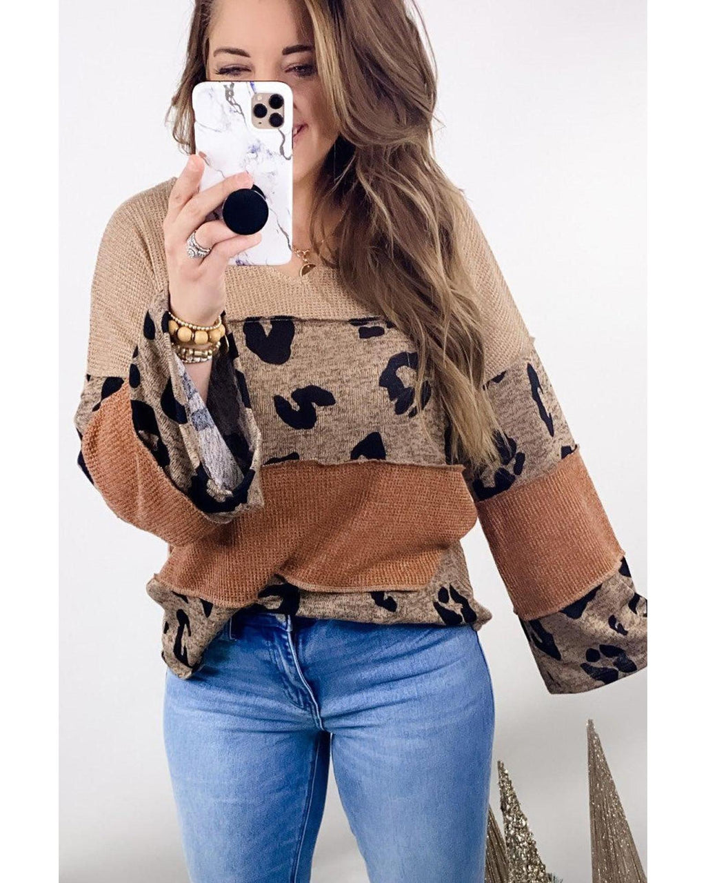 Azura Exchange Leopard Colorblock Patchwork Knit Top - S