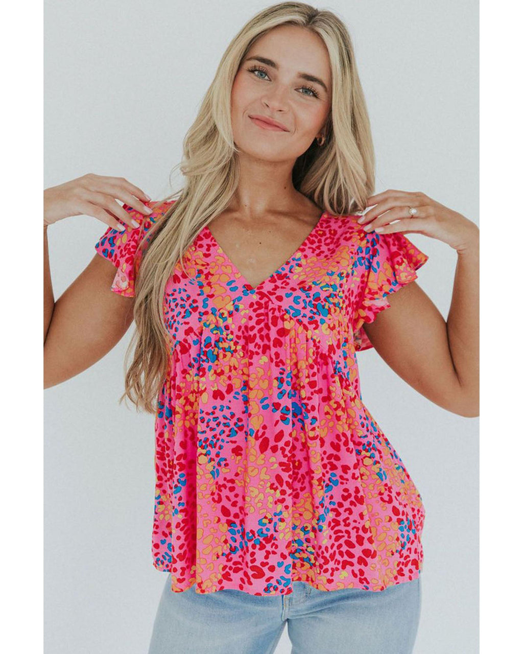 Azura Exchange Leopard Print Flutter Sleeve Blouse - S