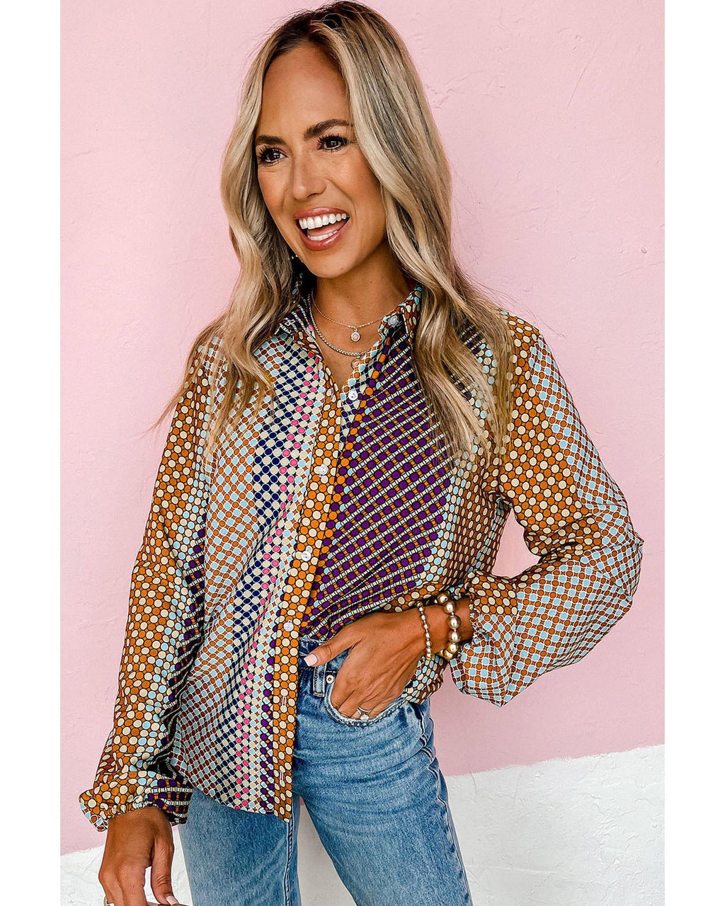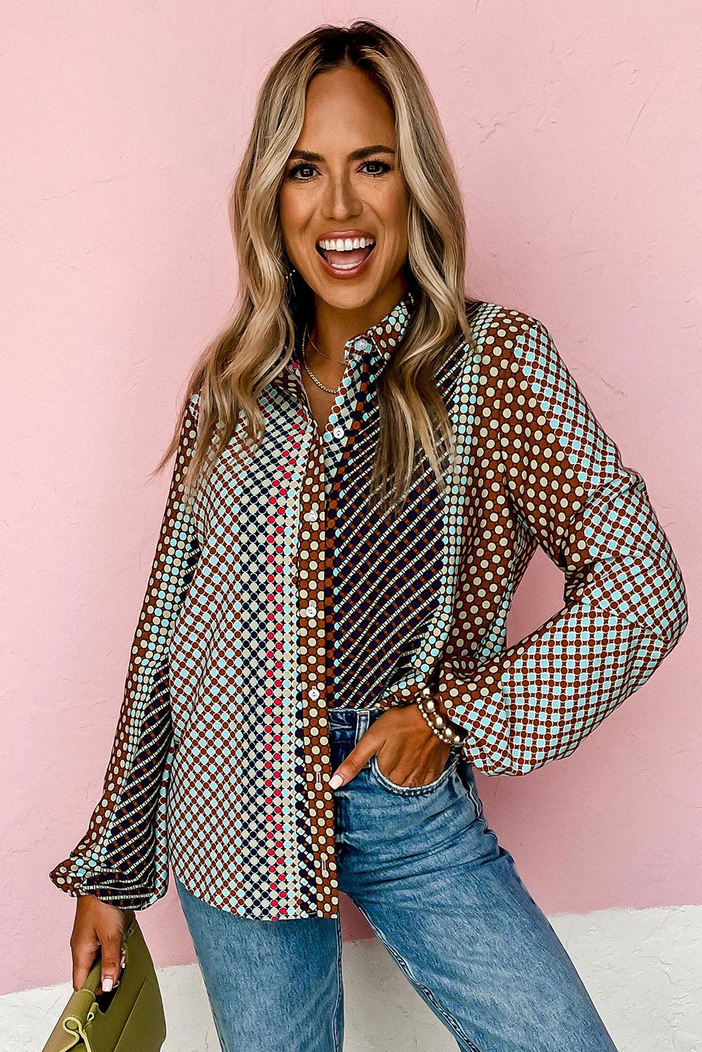 - Dot Print Long Sleeve Button Down Shift Shirt
