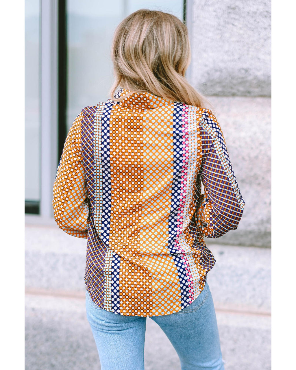 Azura Exchange Long Sleeve Dot Print Button Down Shirt - XL