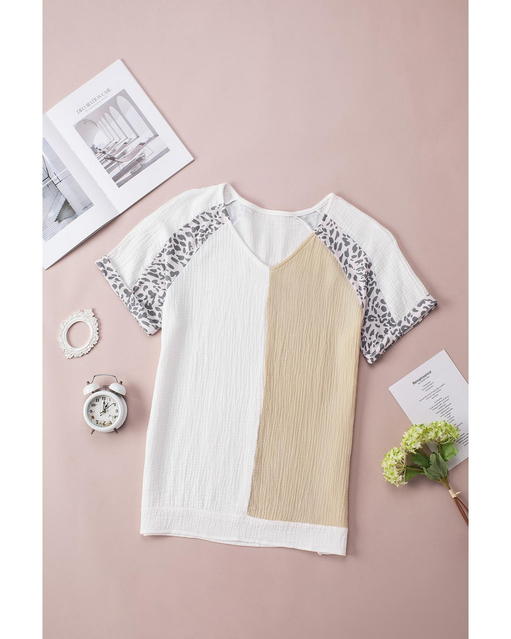 Azura Exchange Patchwork Leopard Trim Blouse - M