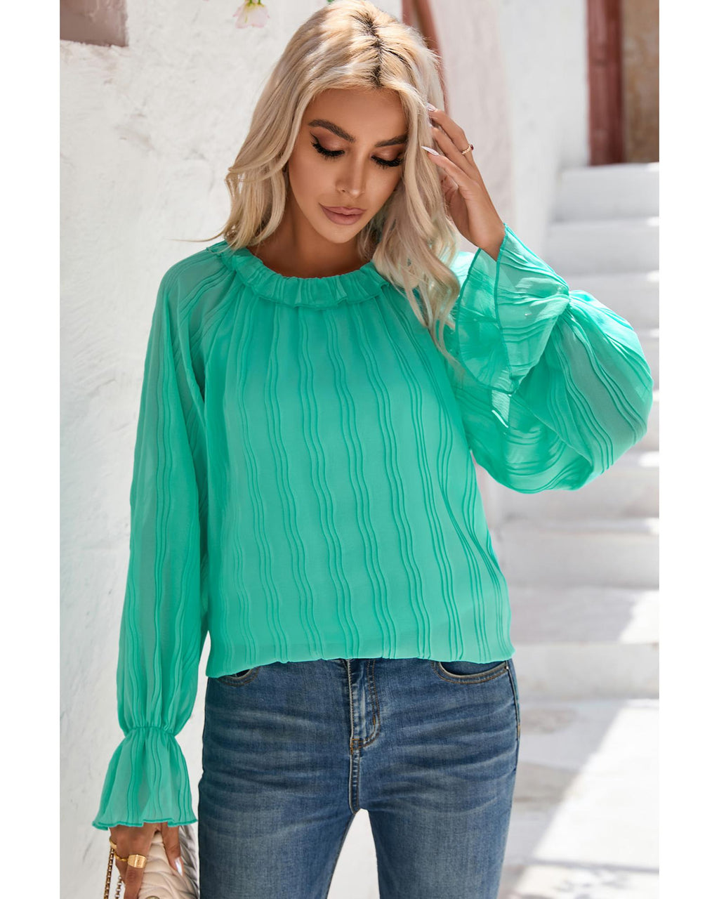 - Luxurious Striking Pleated Flared Cuff Long Sleeve Blouse
