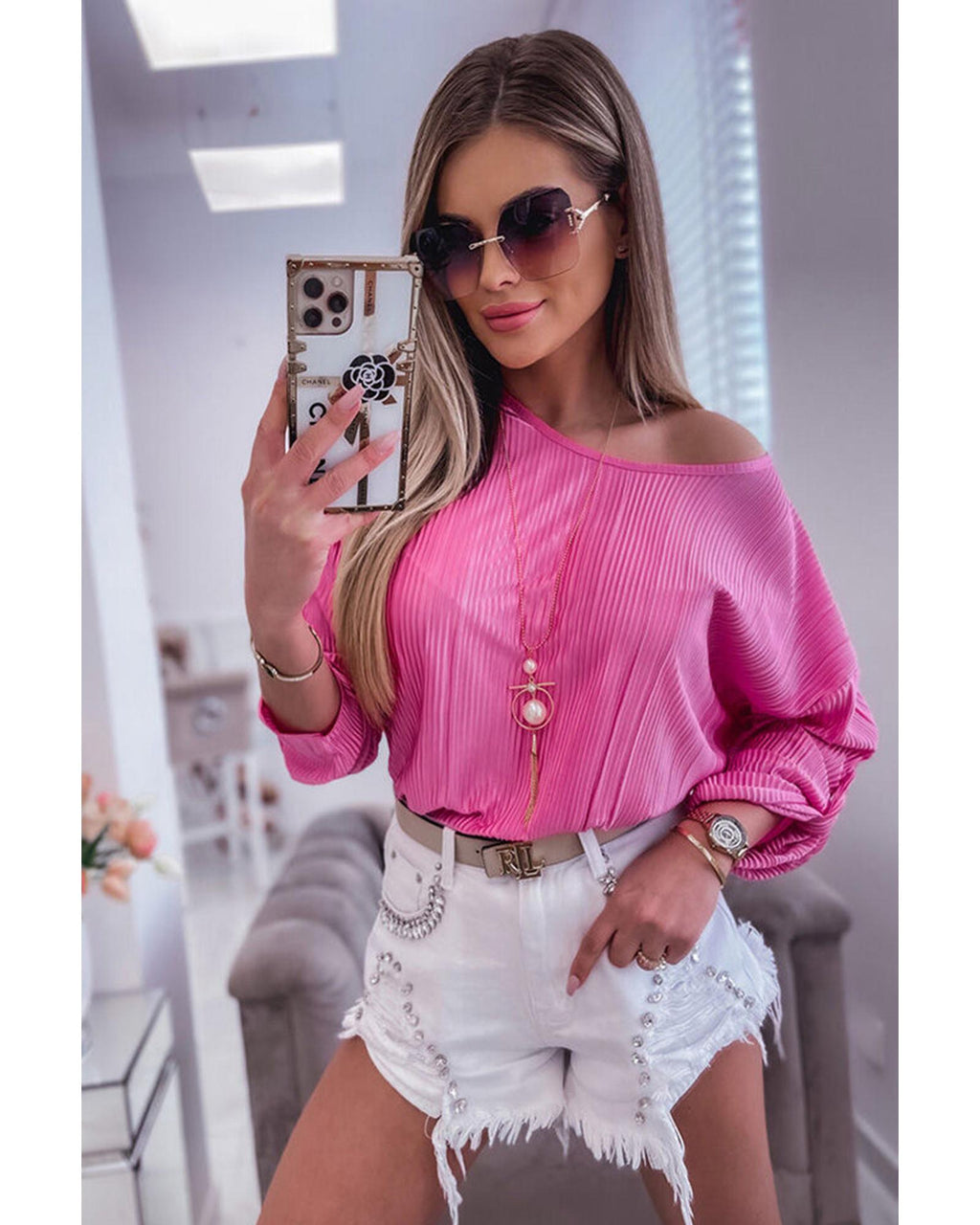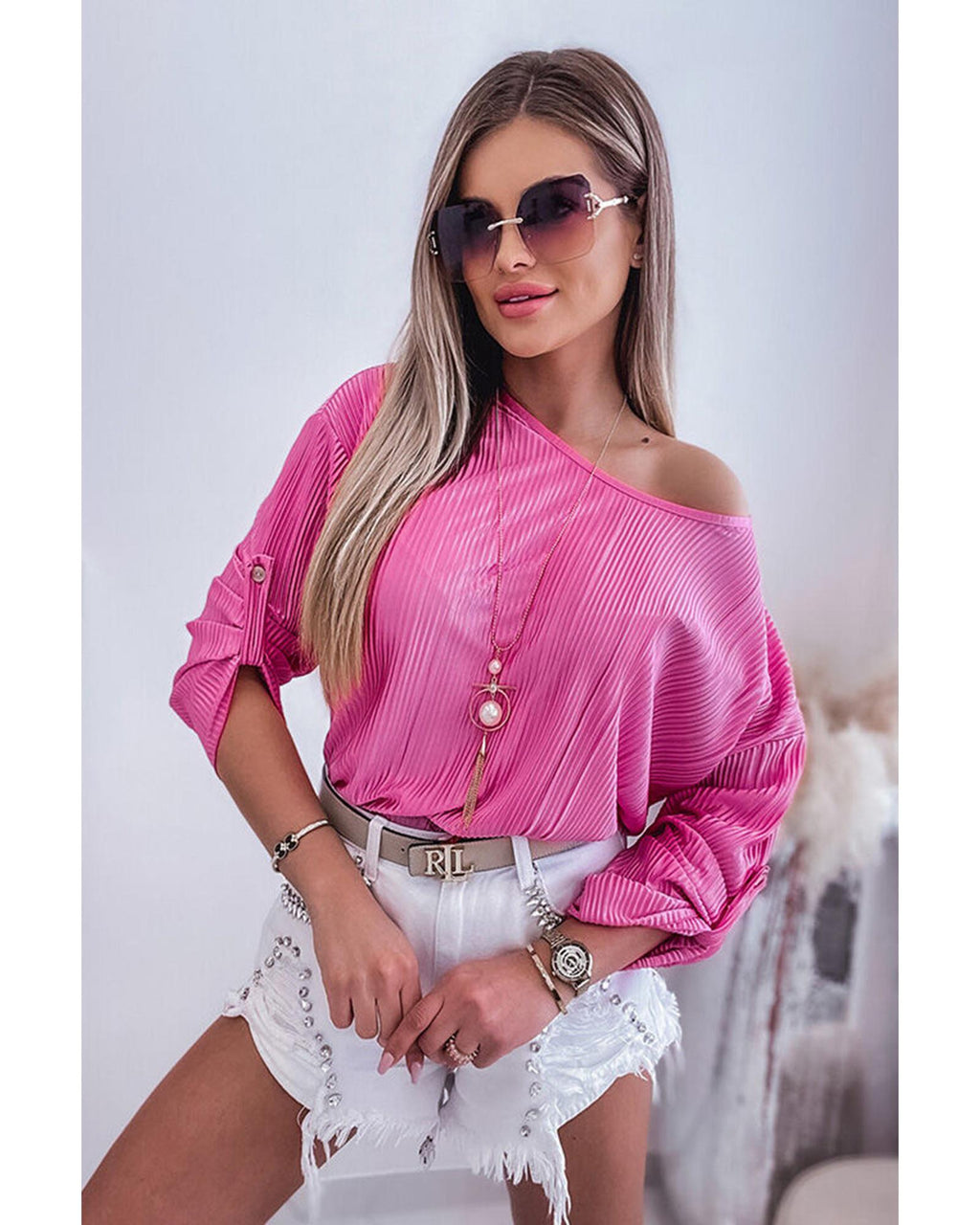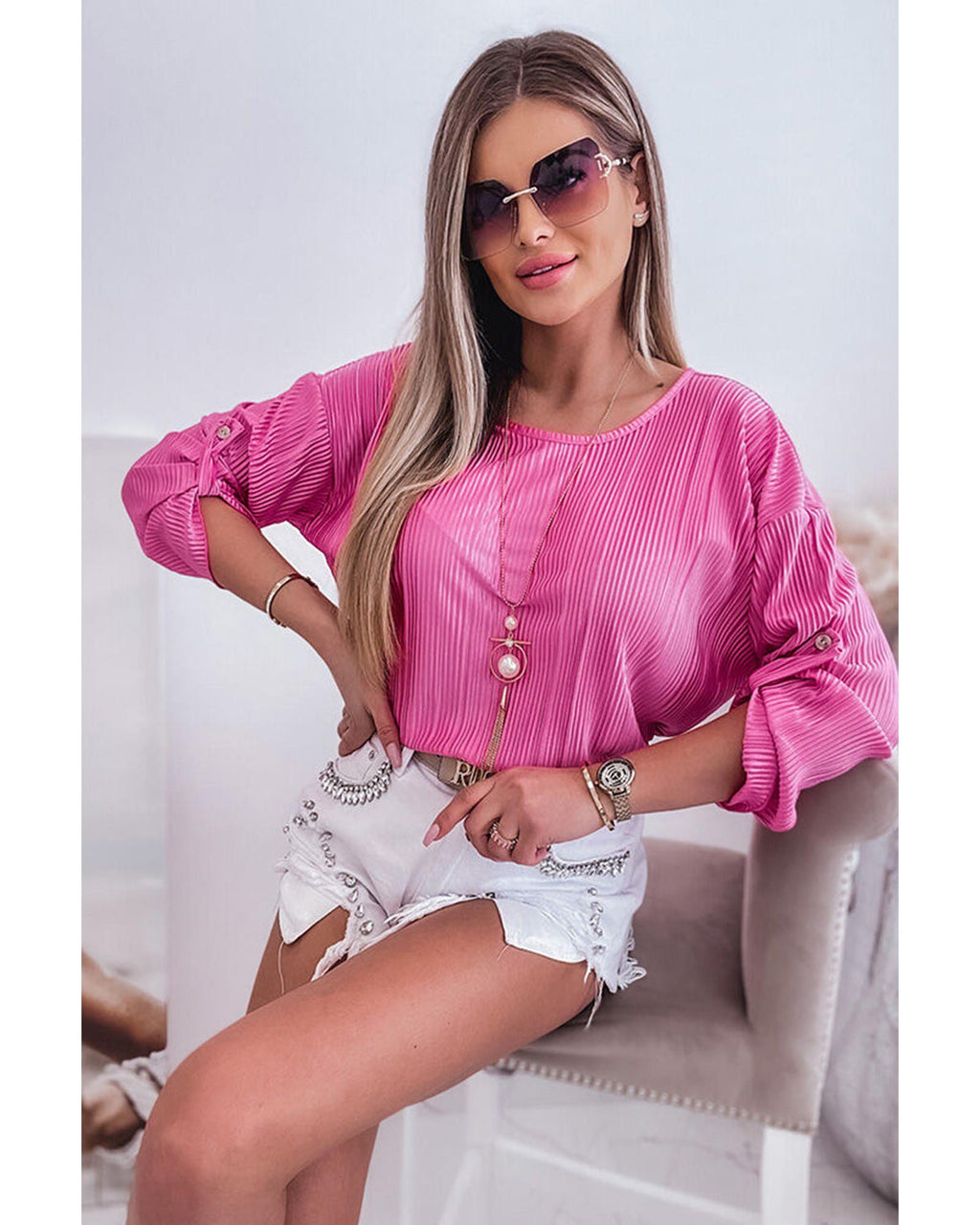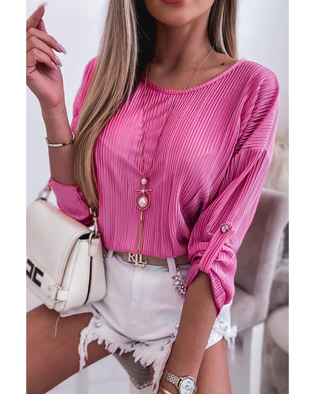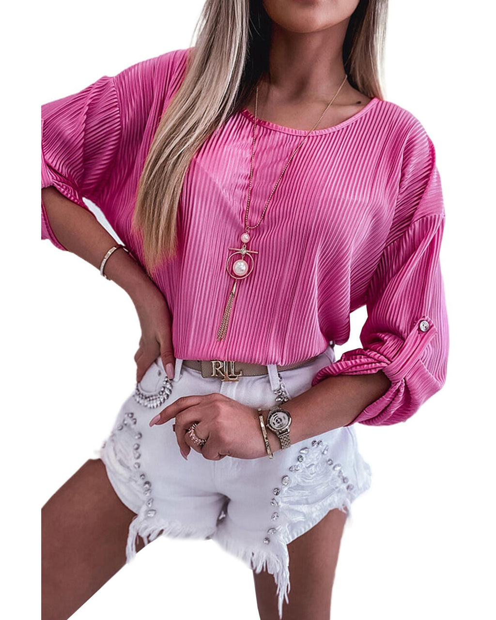 - Versatile and elegant Rose Pleated Texture Roll Tab Sleeve Blouse for women