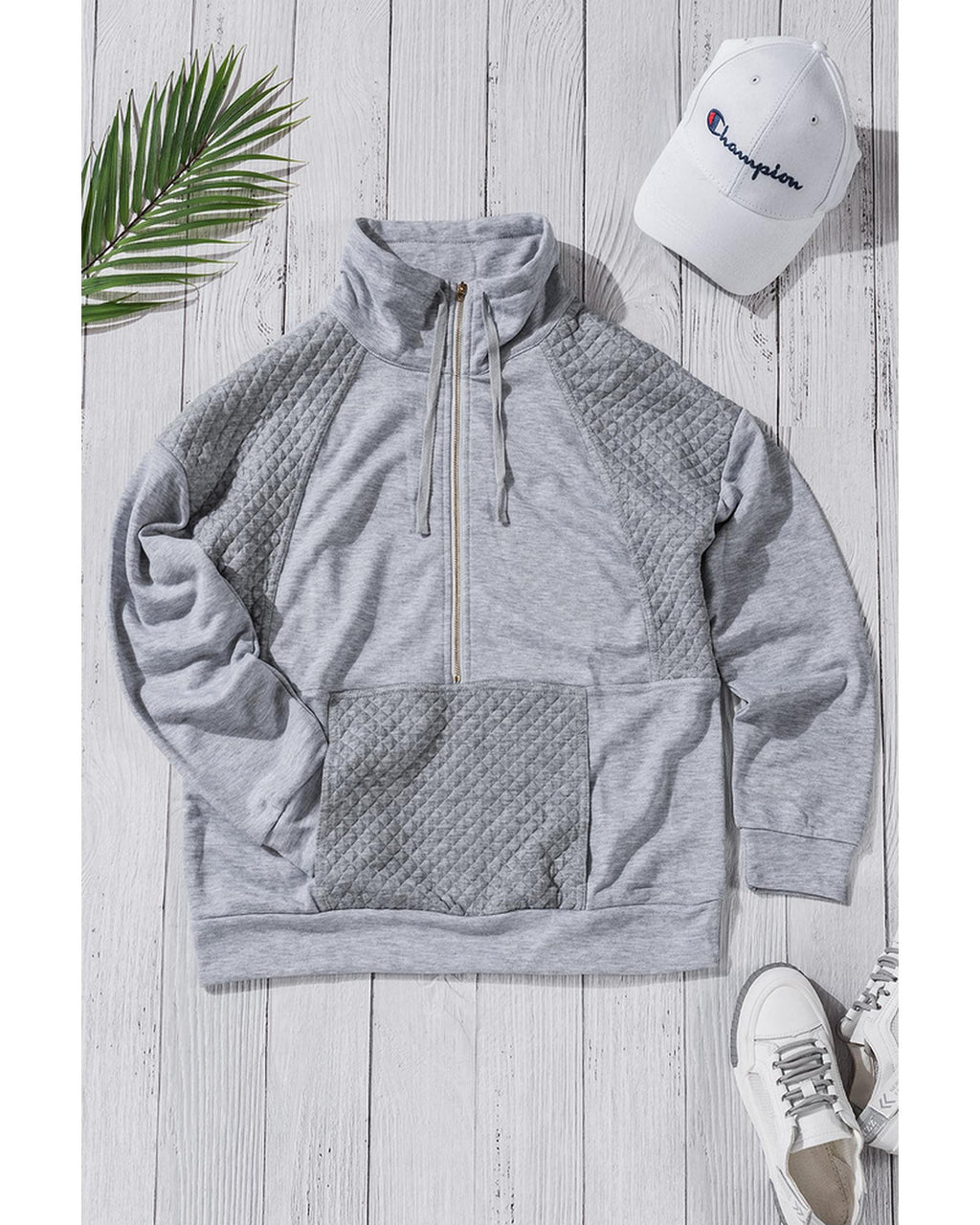 - Luxurious and stylish Quilted Patch Half Zipper Sweatshirt