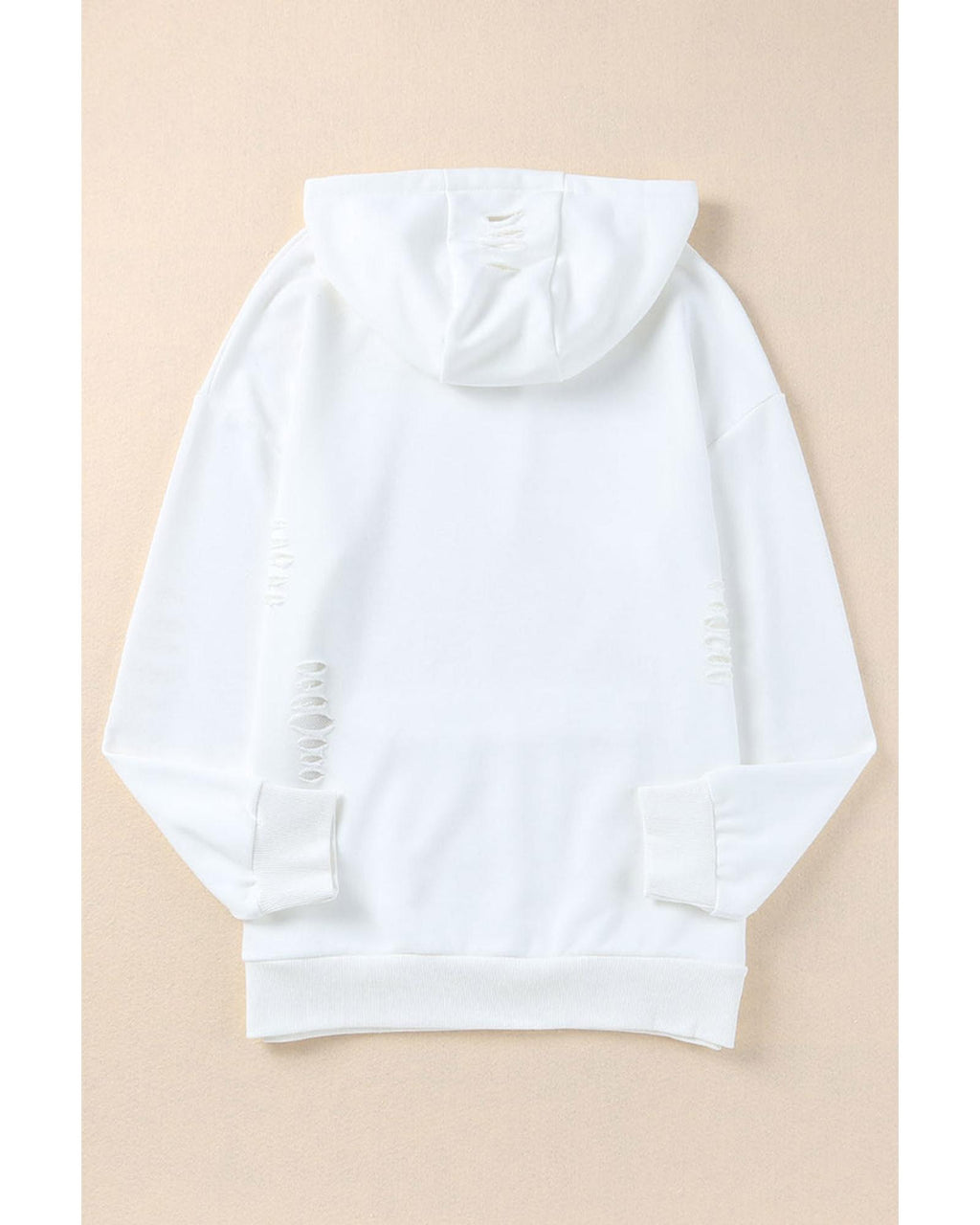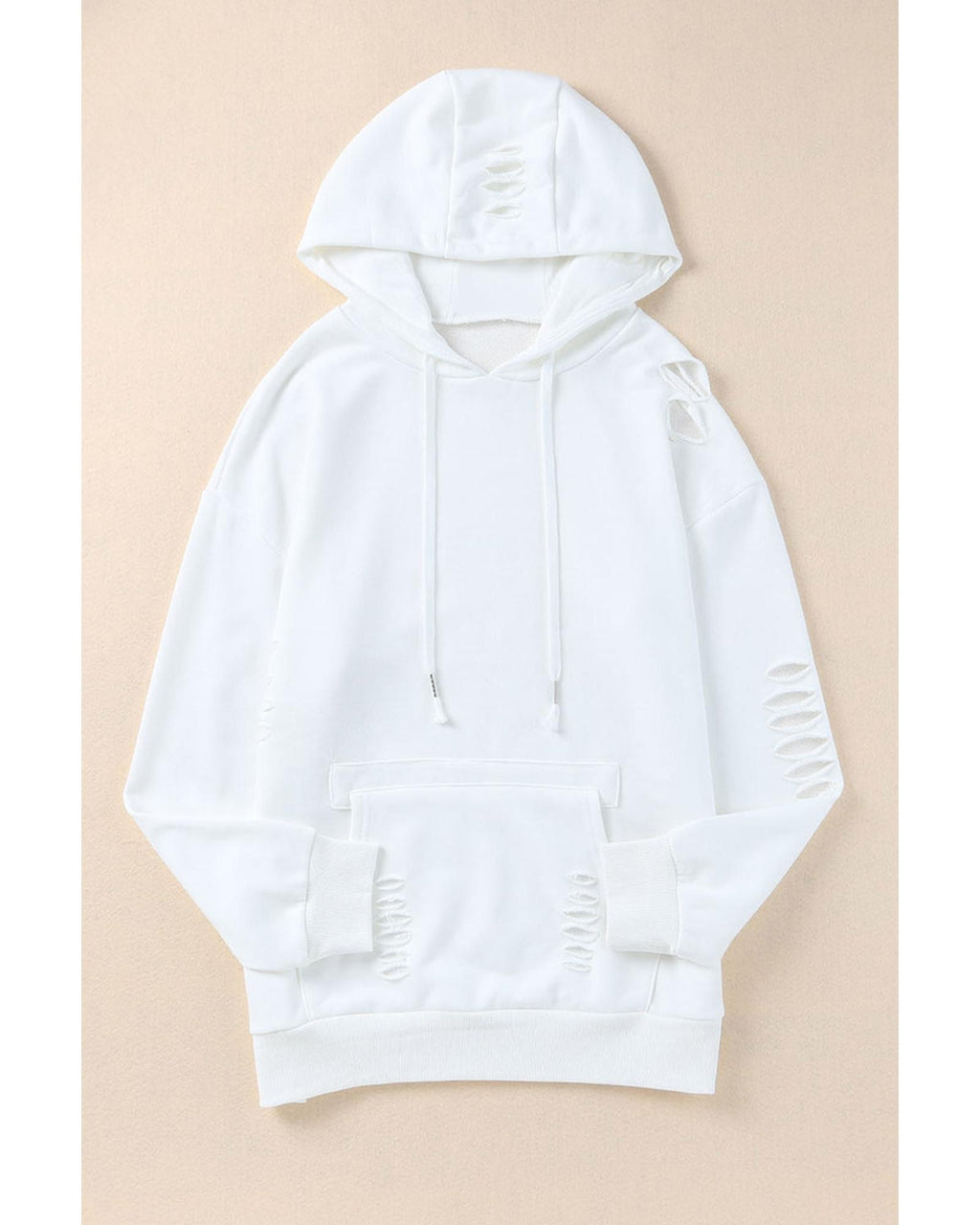 Azura Exchange Ripped Hooded Sweatshirt with Kangaroo Pocket - S