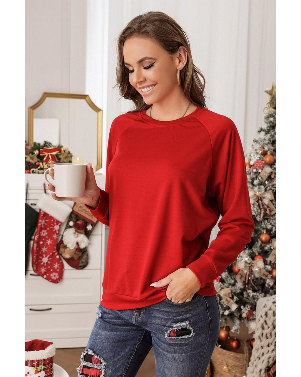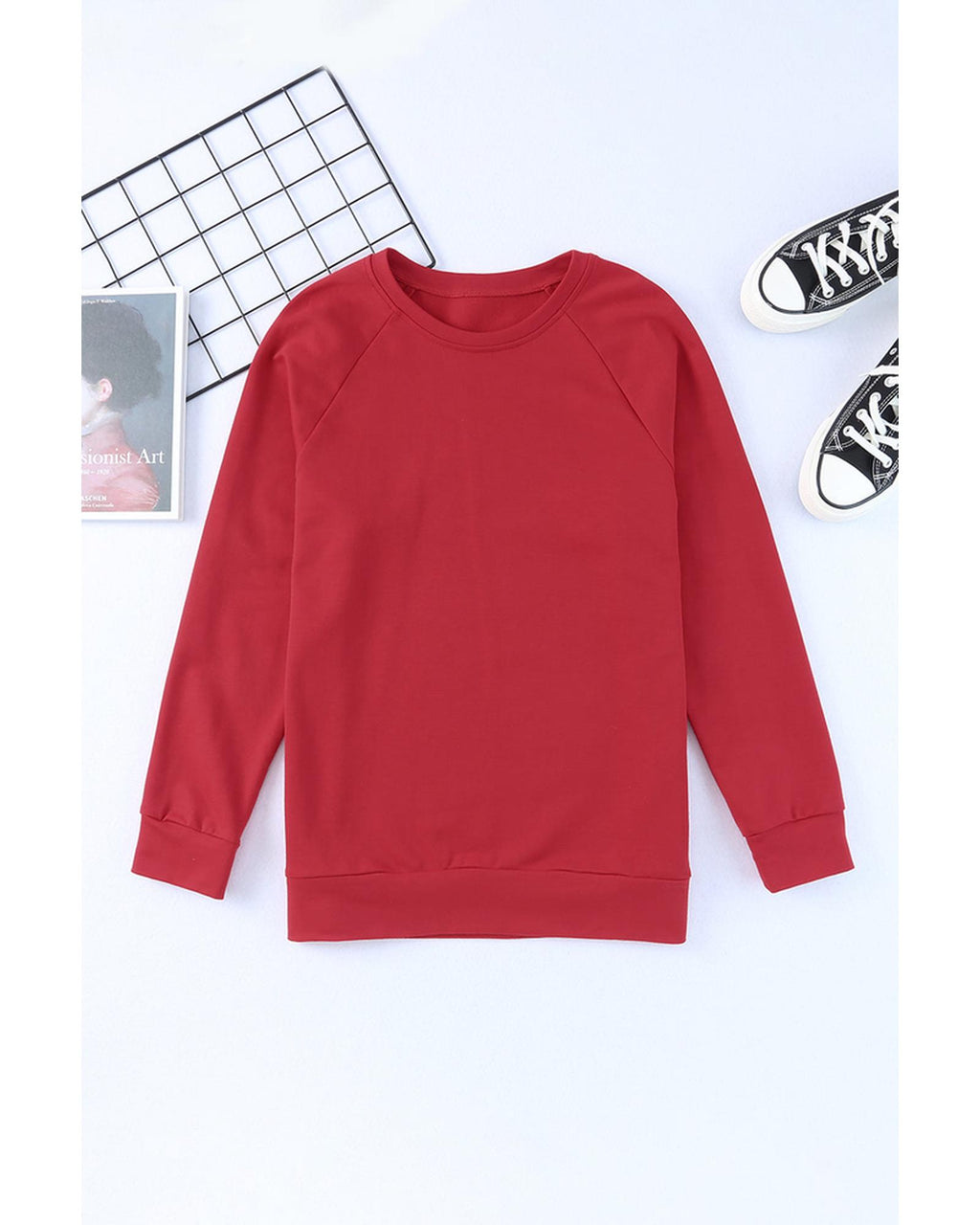 - Solid Round Neck Raglan Sleeve Sweatshirt