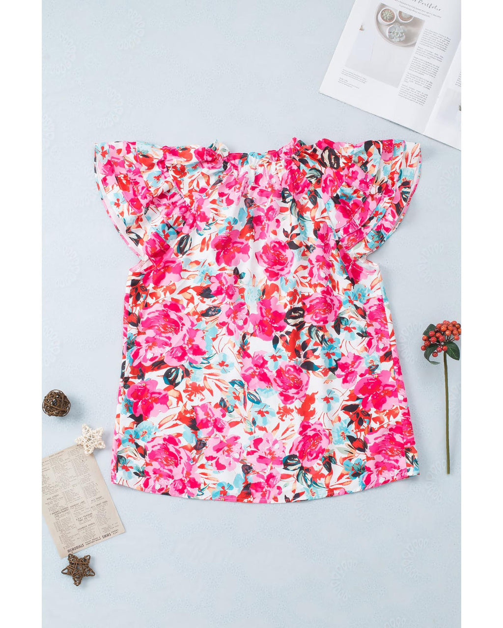 Azura Exchange Ruffle Flutter Sleeve Floral Print Blouse - M