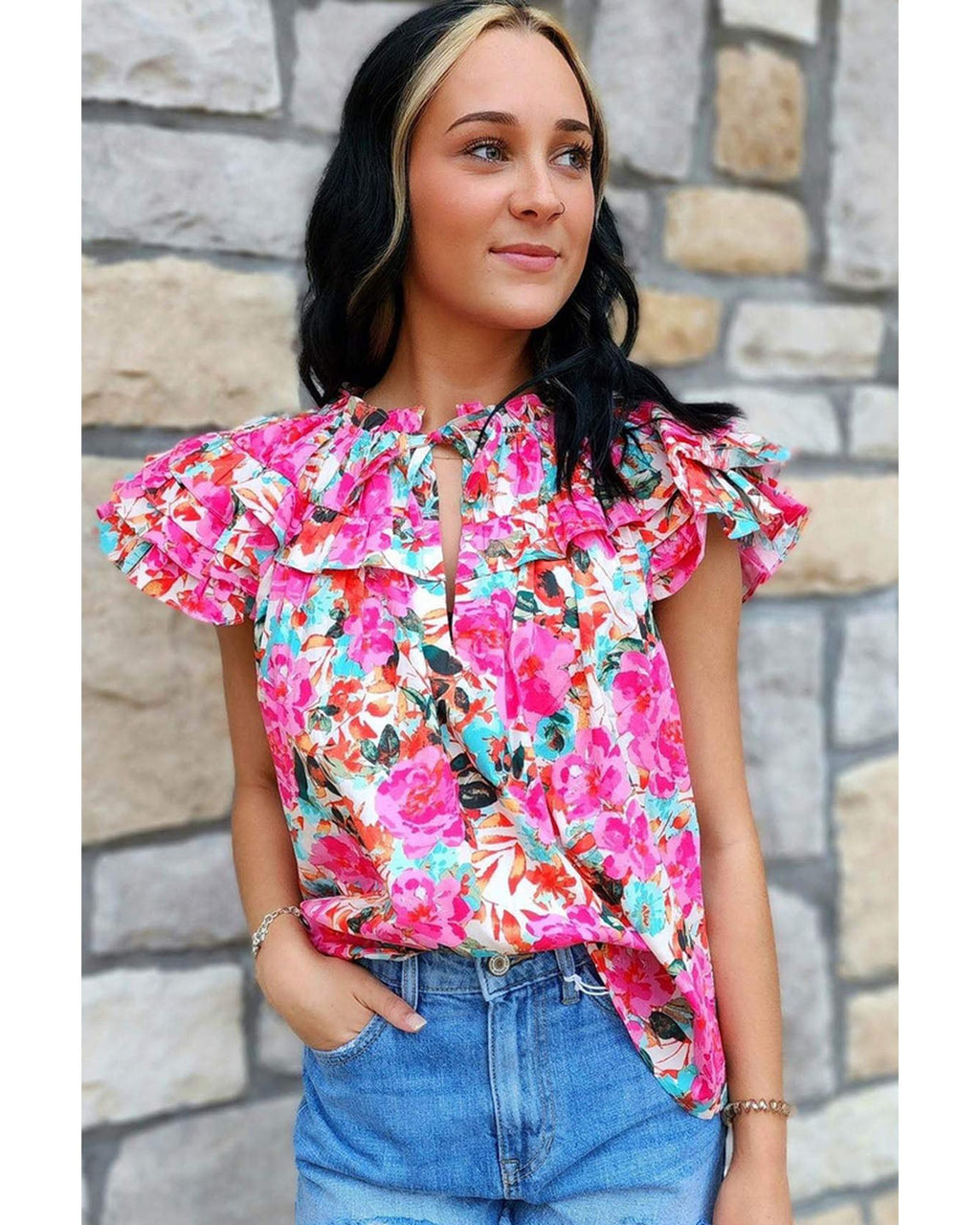 Azura Exchange Ruffle Flutter Sleeve Floral Print Blouse - S