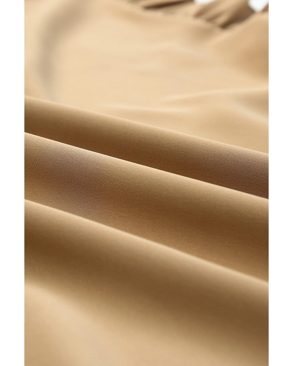 • Stylish and versatile Khaki Ruffle Trim Short Sleeve Oversize Blouse for women