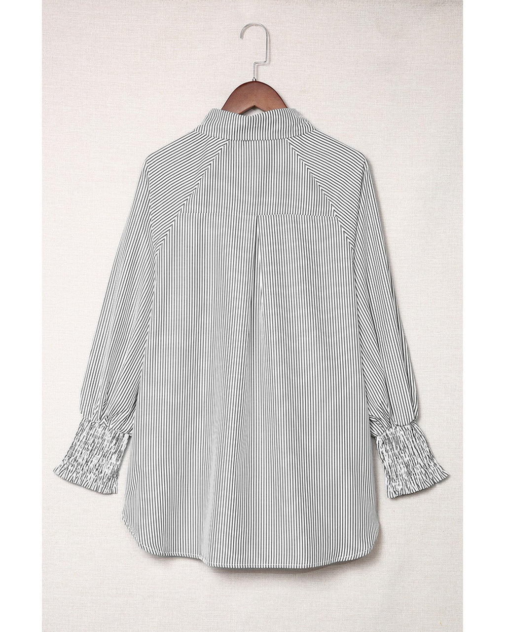 Azura Exchange Striped Boyfriend Shirt with Smocked Cuffs and Pocket - XL