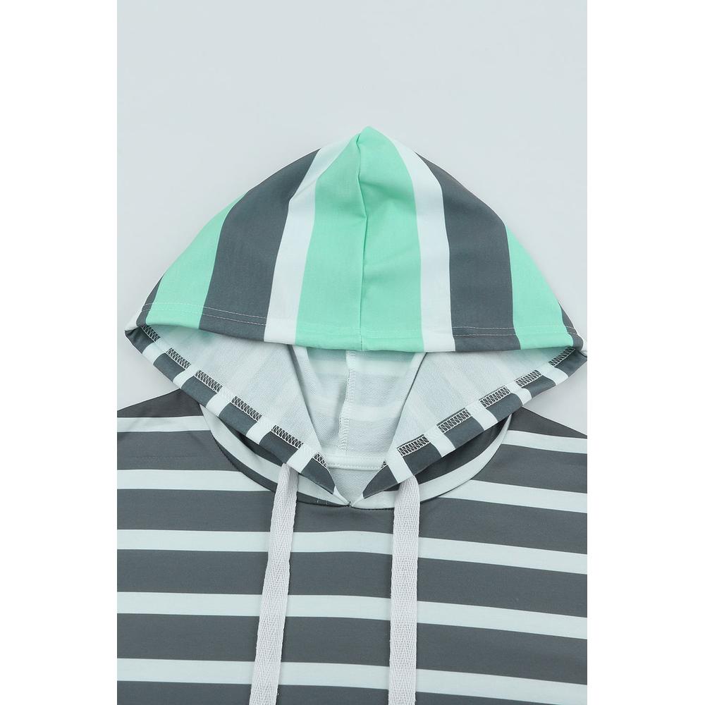 - Style: Striped Drawstring Long Sleeve Hoodie