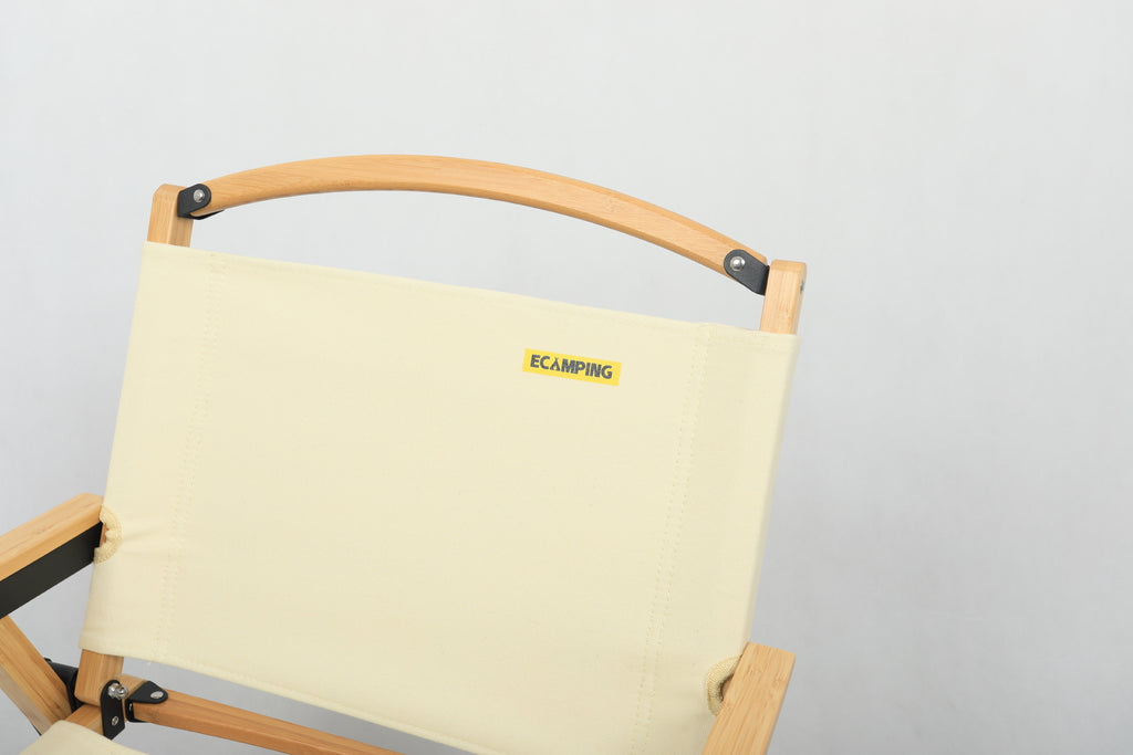 Bamboo Canvas Foldable Outdoor Camping Chair - Wooden Travel Picnic Park in Khaki/Beige