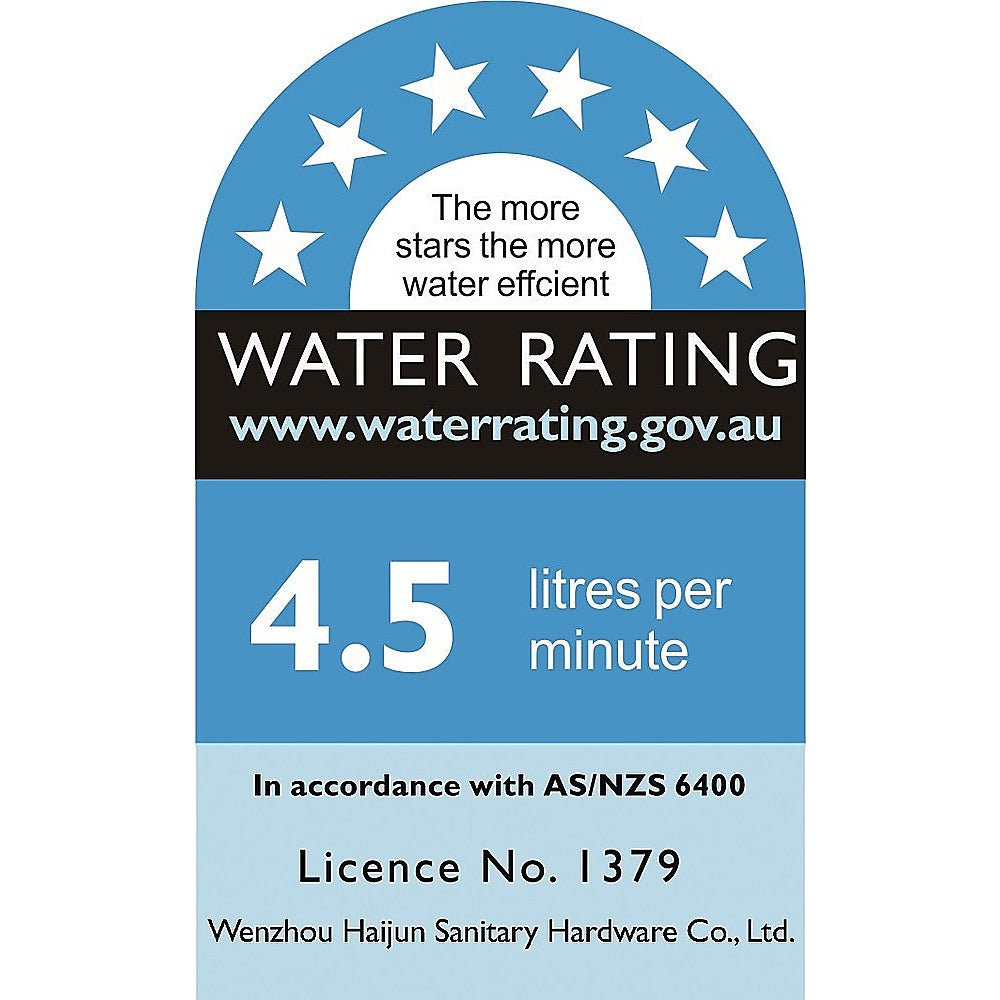 Your purchase of the mixer also comes with peace of mind. The mixer is Australian Certified and Watermark approved, complying with AS/NZS 3718:2005 which ensures consumers of quality plumbing products. This product is also WELS-approved with a 5-star water efficiency rating of 5.5 Litres per minute.