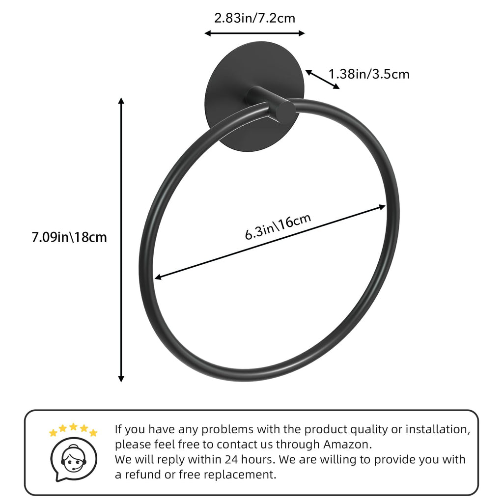 Bathroom Towel Ring Bathroom Towel Rack Adhesive Hand Towels Holder Towel Hanger Round Black
