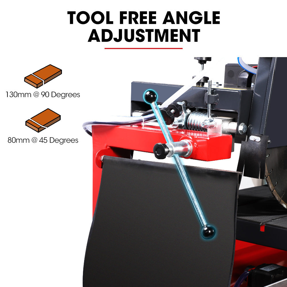 The Baumr-AG Brick Stone And Masonry Table Saw showcases an expansive carriage deck that is mounted on quad ball-bearing-rollers. It easily rip-cuts up to 700mm long for handling large format sizes of marble, granite, jade, porcelain and ceramic stone and concrete. With substantial power for cutting depths up to 130mm at 90 degrees and 45 degree cuts of up to 80mm it can easily deal with standard 76mm Australian bricks.