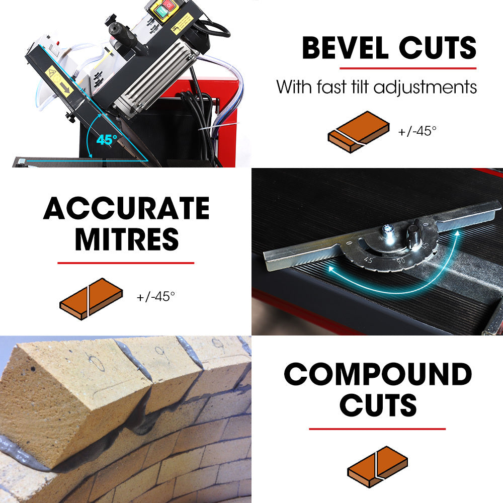 - Straight and bevel cuts standard Australian sized bricks