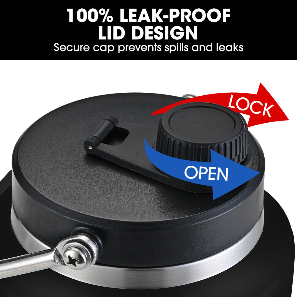 BAUMR-AG 3.8L Double Wall Insulated Stainless Steel Water Bottle, Drink Jug with Handle, Black
