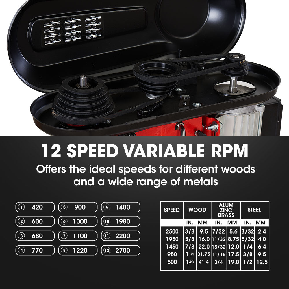Baumr-AG 600W 12" Pedestal Floor Drill Press, 16 Speeds, 16mm Chuck (DP19)