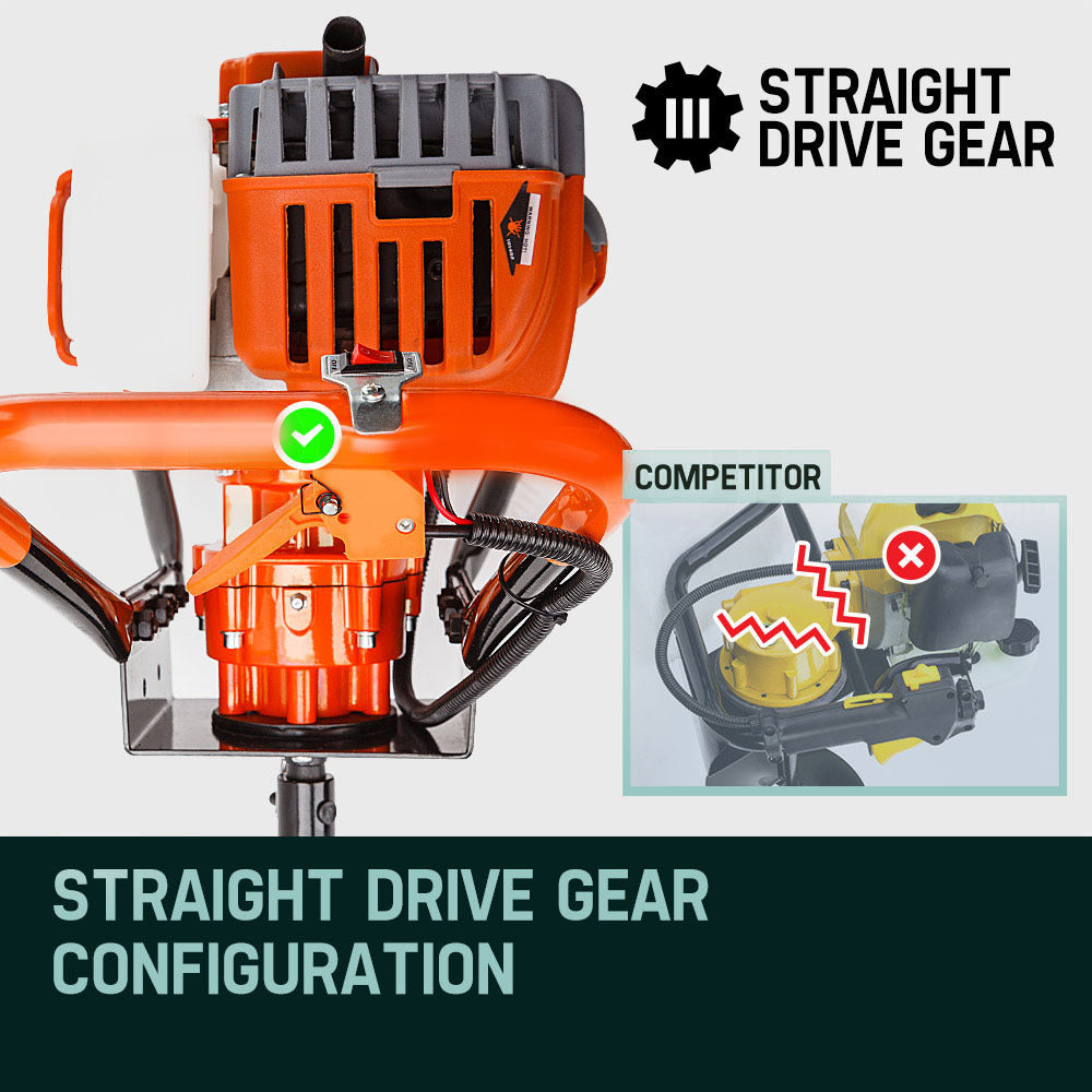 Utilising this unique combination along with a full size commercial straight drive, large capacity fuel tank and high tensile gear set, durability and reliability are second to none. Time to throw away your old shovel and become the master of holes.