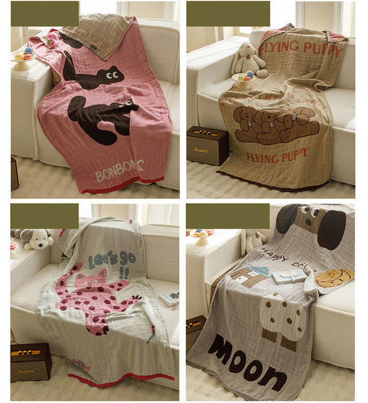 Bears Pattern Soft and Absorbent 4-Layer Cotton Bath Towel for Adults and Children | Cartoon Design | 80*160 cm | Perfect for Bathing and Lounging