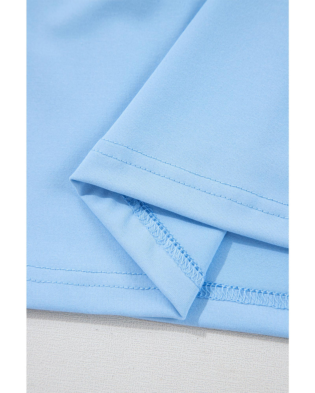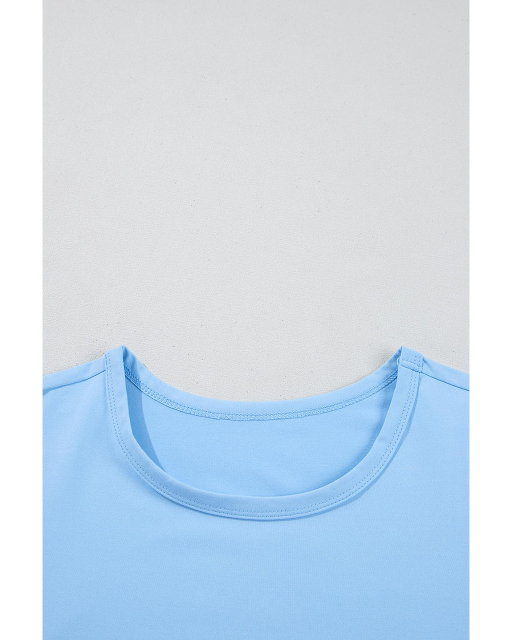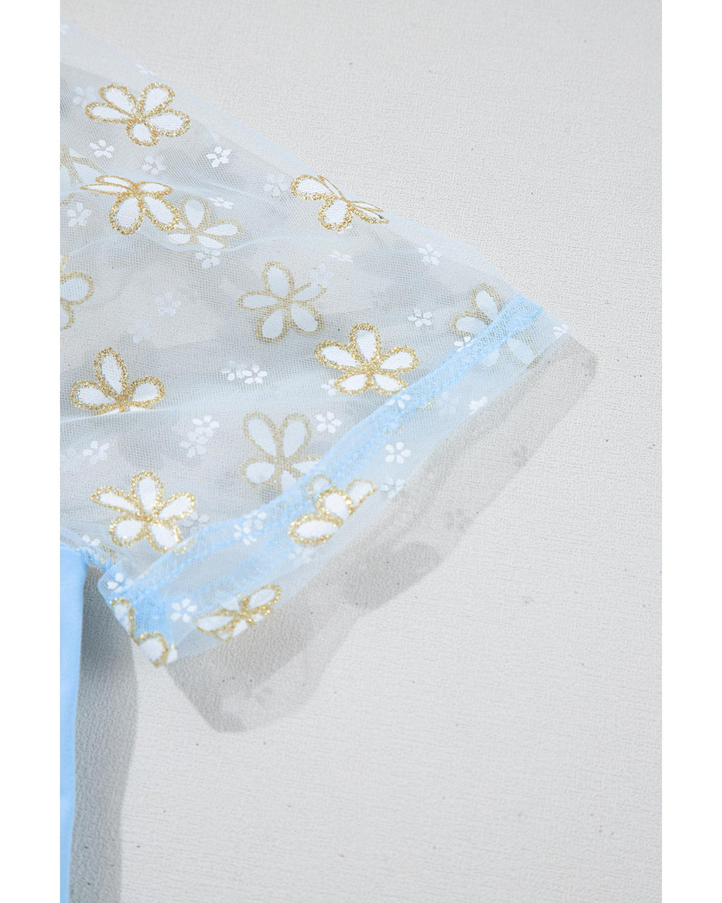 Beau Blue Floral Mesh Puff Sleeve Crew Neck Top - M