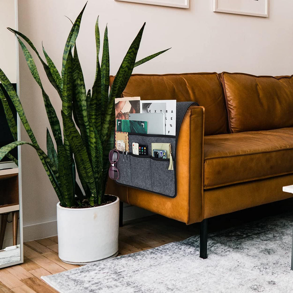 Beige Felt Couch Armrest Organizer - Multifunctional Storage Pouch