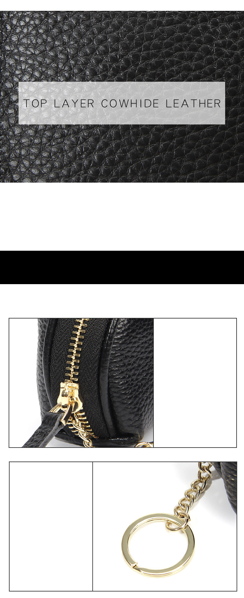 - Secure Zipper Closure: A smooth and sturdy metal zipper keeps your coins, folded notes, keys, and other small valuables securely stored.