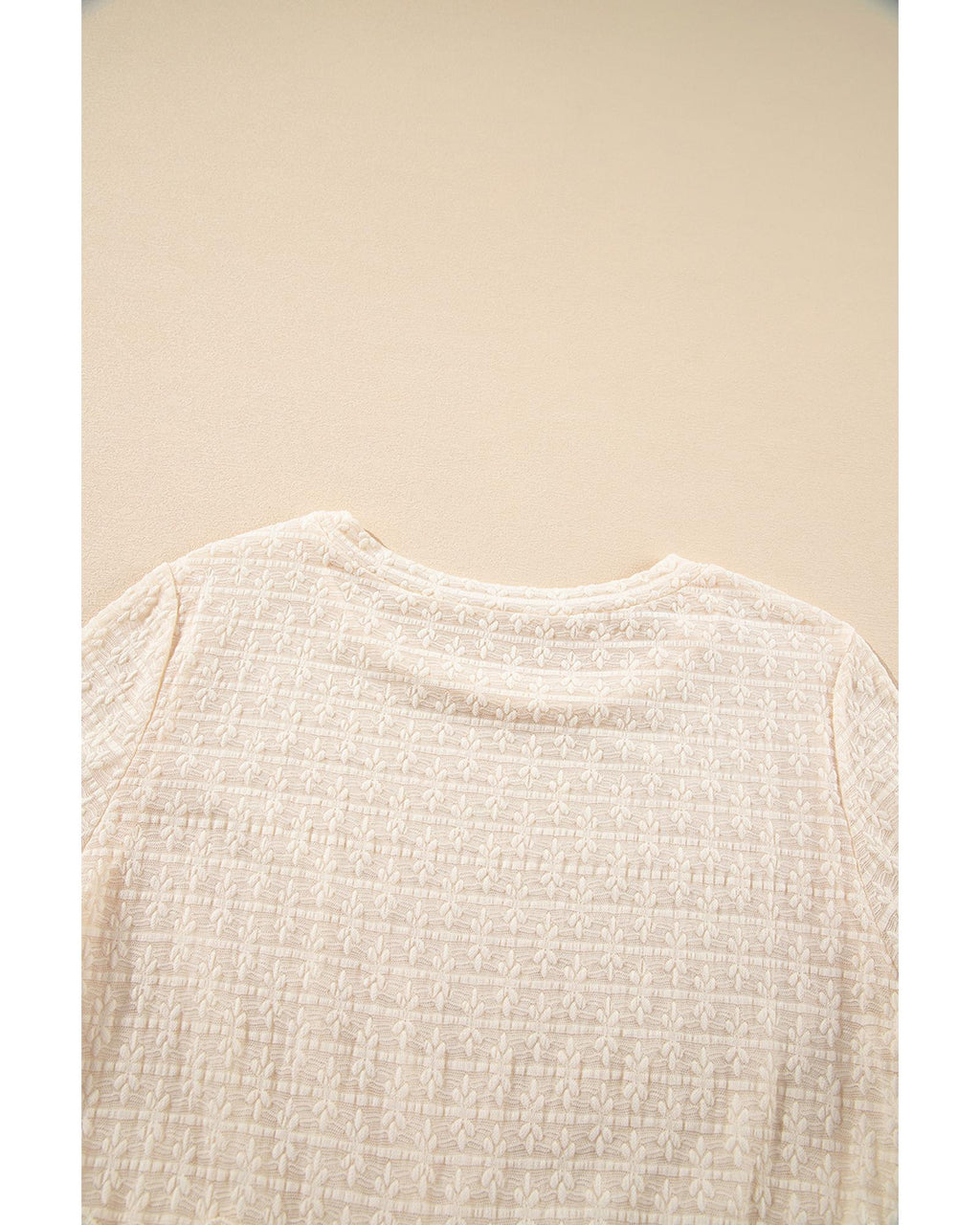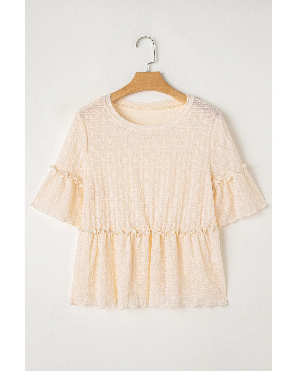 Beige Solid Color Textured Ruffled Short Sleeve Blouse - XL