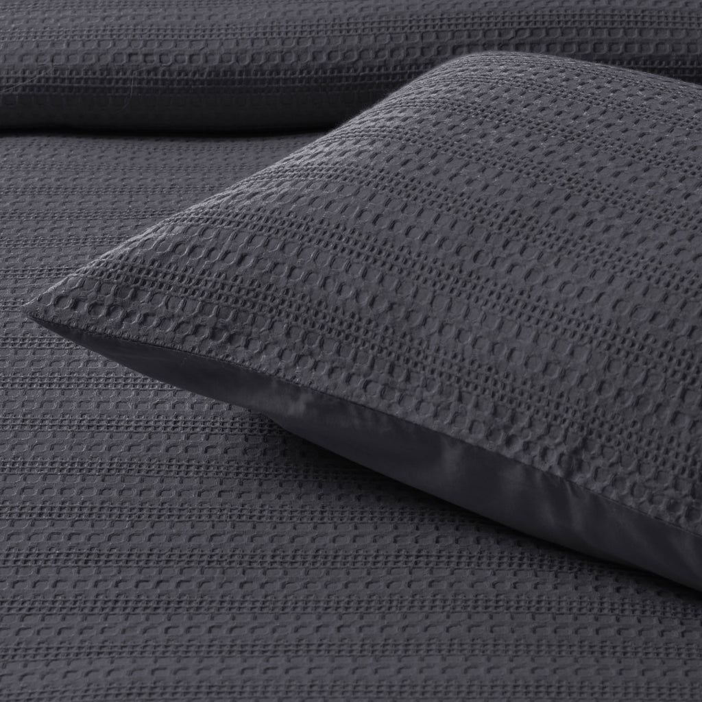 The Bianca Kahlani Charcoal Waffle Quilt Cover Set is made from a beautiful waffle fabric which features a horizontal jacquard design. Available in three on trend colours, Chocolate, Charcoal and sage. This set features a charcoal tone that's rich, warm, and perfect for layering. Whether you're decorating a master bedroom or a guest room, this quilt cover brings a simple elegance that suits just about any setting.