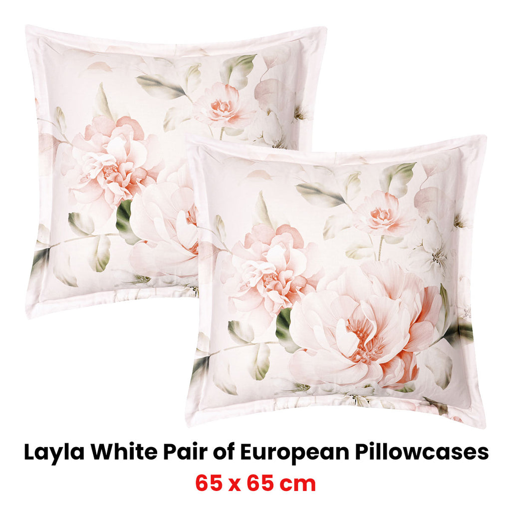 Bianca Pair of Layla White European Pillowcases 65 x 65cm