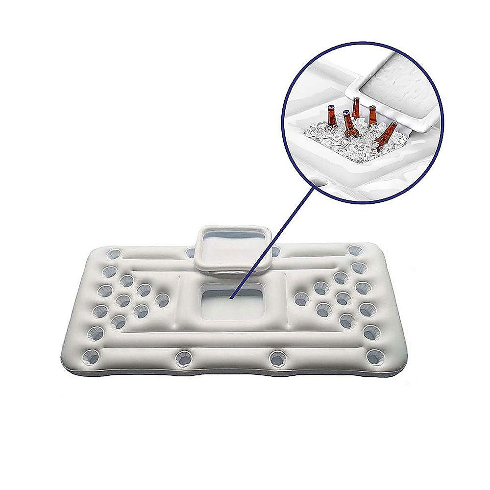 What's a pool party without an inflatable beer pong raft? After all, pong games amp up the whole ambience of the party. To let you enjoy the pool, Randy & Travis Machinery is introducing you to this inflatable beer pong raft just like the table in your lounge! It's a floating table with built-in cup holders on each side so you can socialize while playing pong games. Each side has a capacity of 10 cups along with a small space in between to store any drinks or munchies.