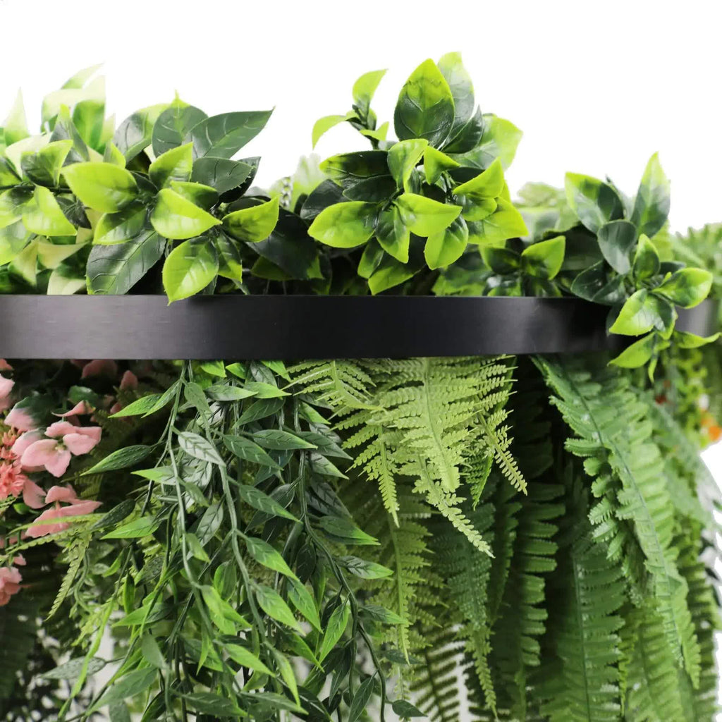 Add a touch of tropical elegance to any space with the Black Artificial Hanging Green Wall Disc featuring lush, cascading tropical ferns. This 60cm disc combines a sleek black frame with an array of life-like ferns and foliage, creating a sophisticated and natural look. Crafted from UV-resistant materials, this hanging disc keeps its vibrant greens even in direct sunlight, making it perfect for both indoor and outdoor settings. Whether used in homes, cafes, offices, or as event decor, this piece brings a refreshing, tropical vibe without any of the maintenance.