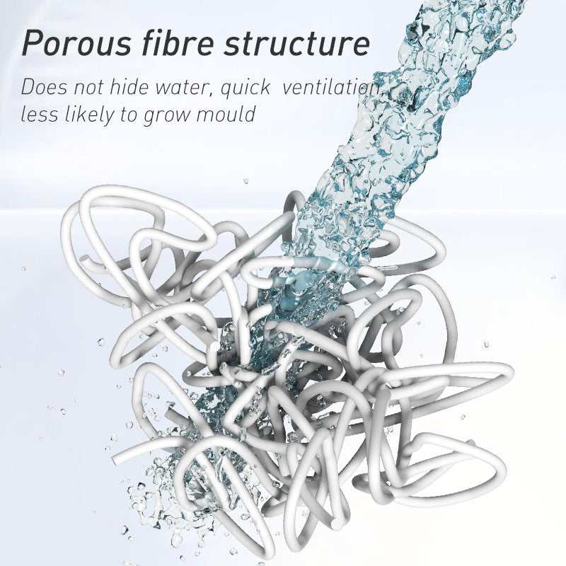 • Fast Drainage: The porous fiber structure does not hide water, allowing for quick ventilation and drainage, minimizing the risk of mildew and odors.