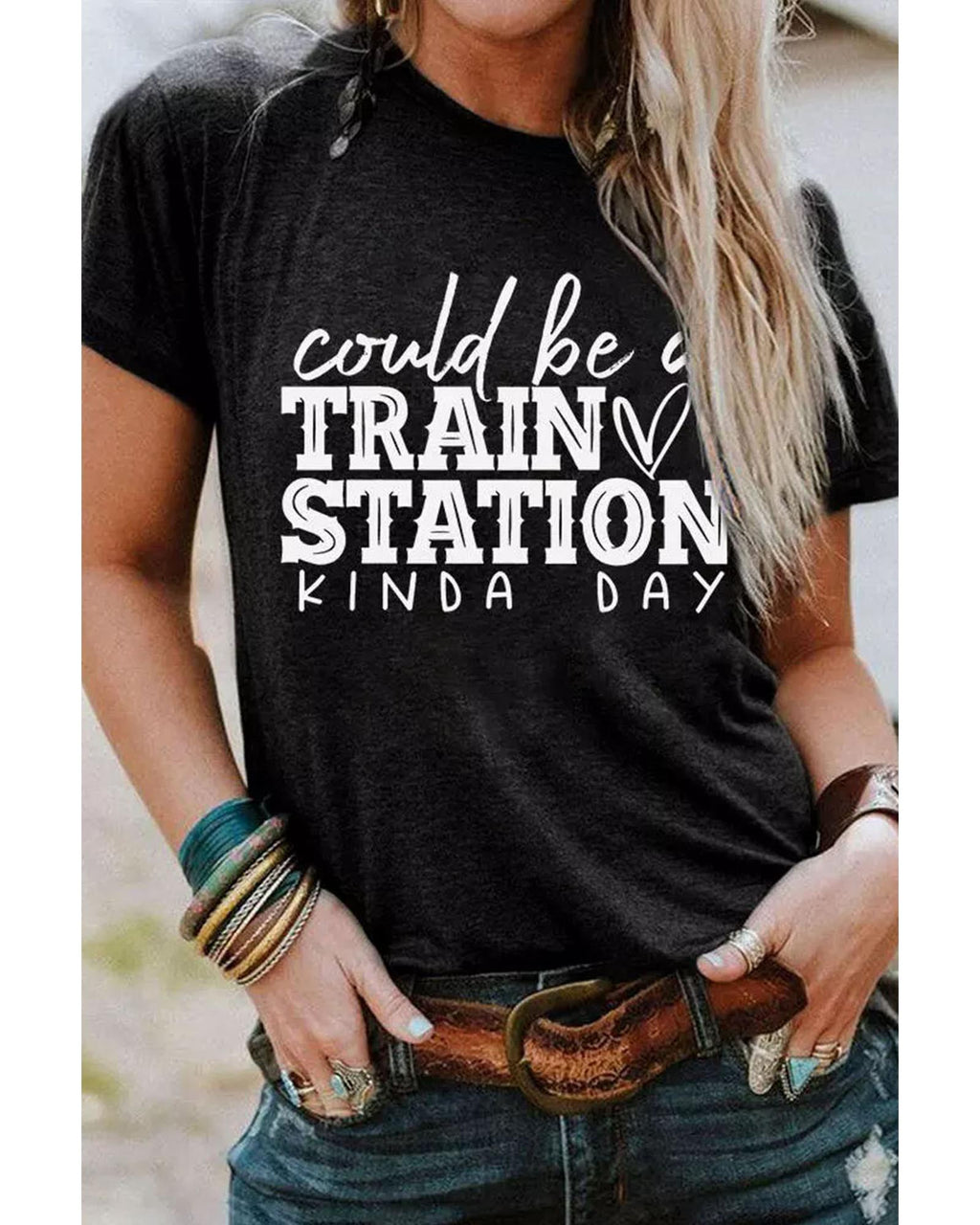 Black Could be a TRAIN STATION KINDA DAY Graphic Tee - S